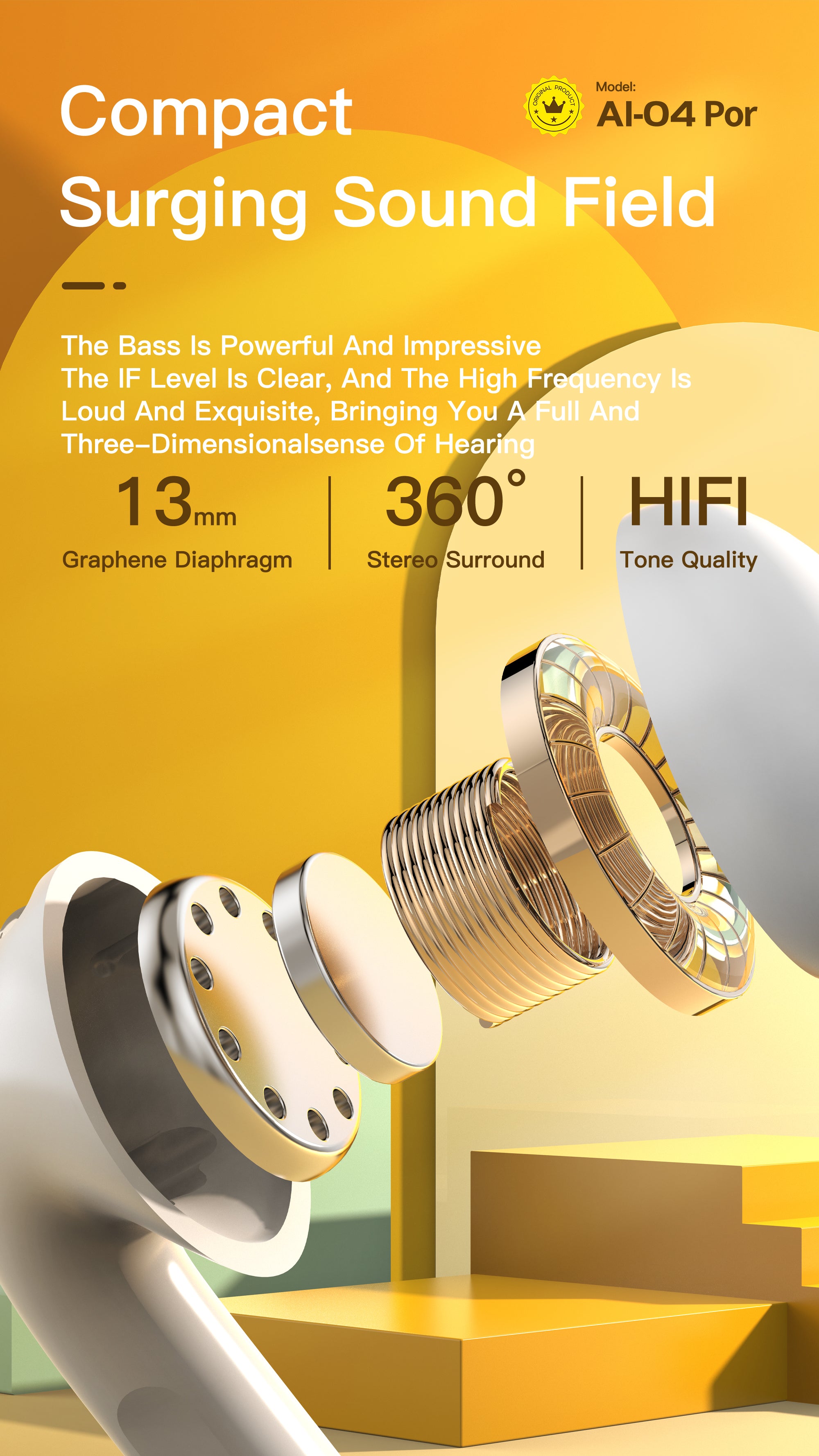 OTU AI-04 Pro Wireless Bluetooth Earbuds - 360° Stereo Sound, 4H Call Time, Bluetooth 5.0, Noise Cancelling