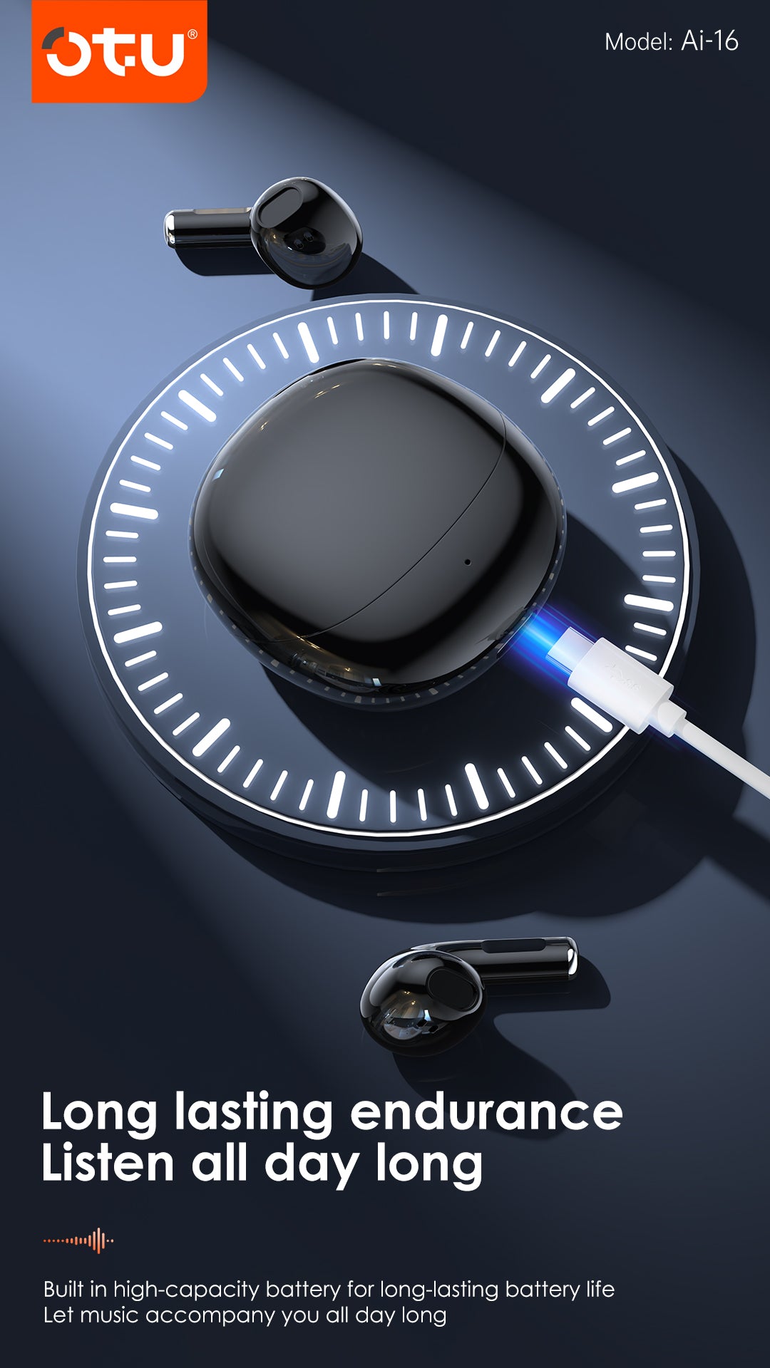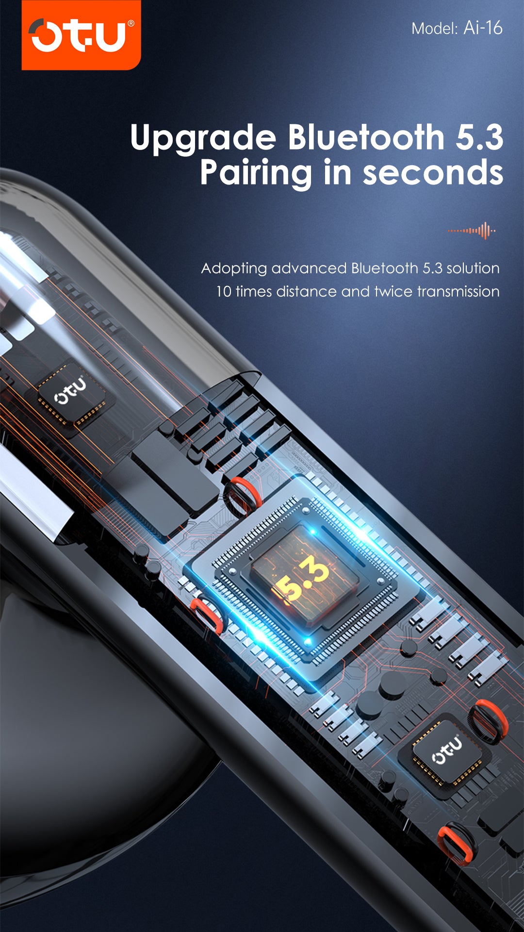 OTU AI-16 Wireless Earbuds - Bluetooth 5.3, 16H Playtime, Deep Bass, Noise Isolation, Sport Earphones for iPhone Android