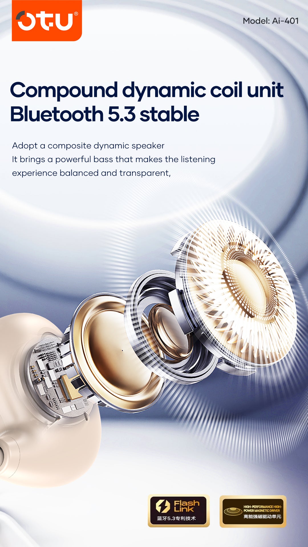 OTU Ai-401 Open Ear Sports Headphones - Bluetooth 5.3, 360° Panoramic Sound, ENC Noise Reduction, Titanium Frame, Sweatproof