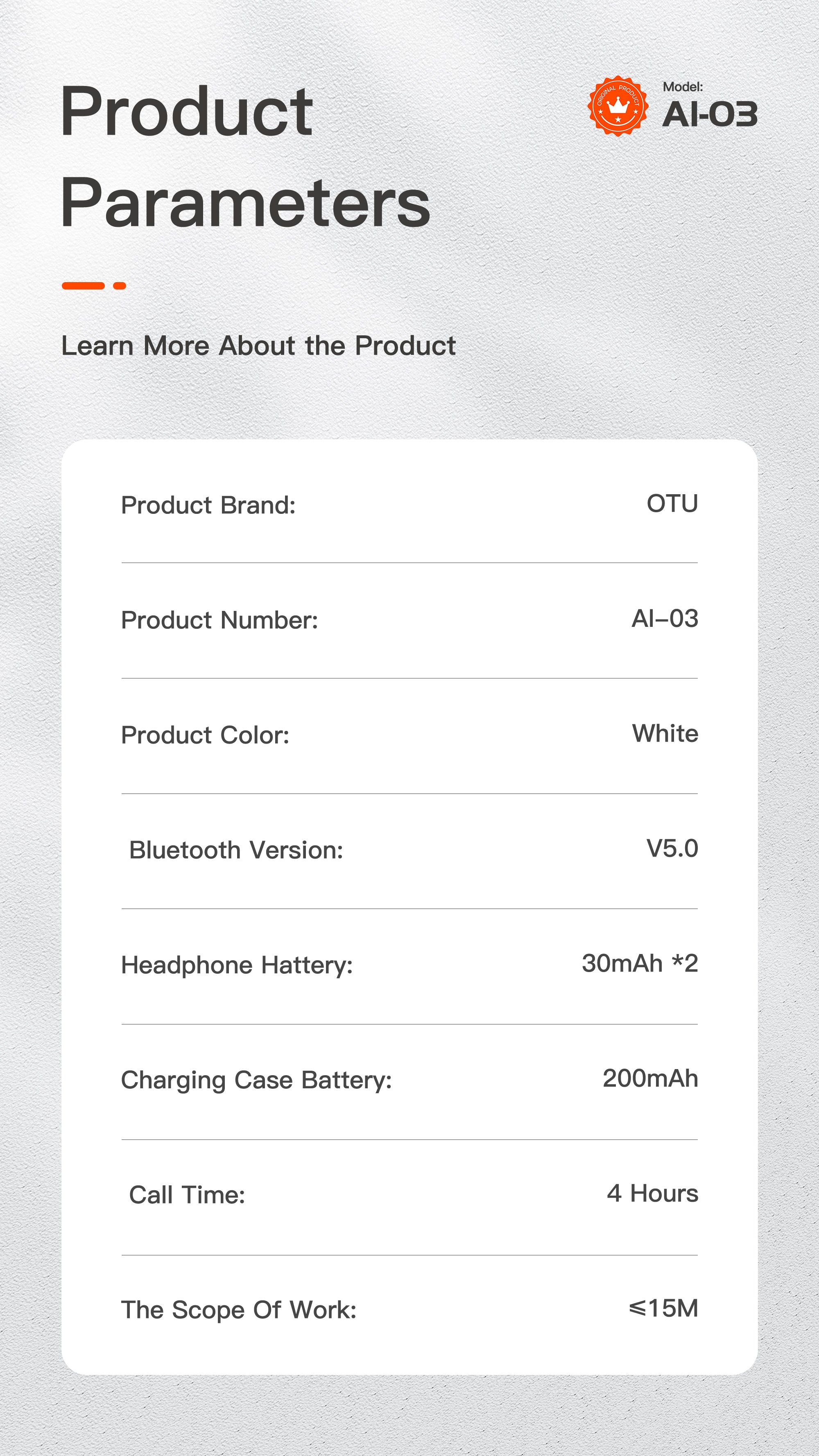 OTU AI03 HIFI Stereo Wireless Earbuds – Deep Bass, Bluetooth 5.0, 4H Talk Time