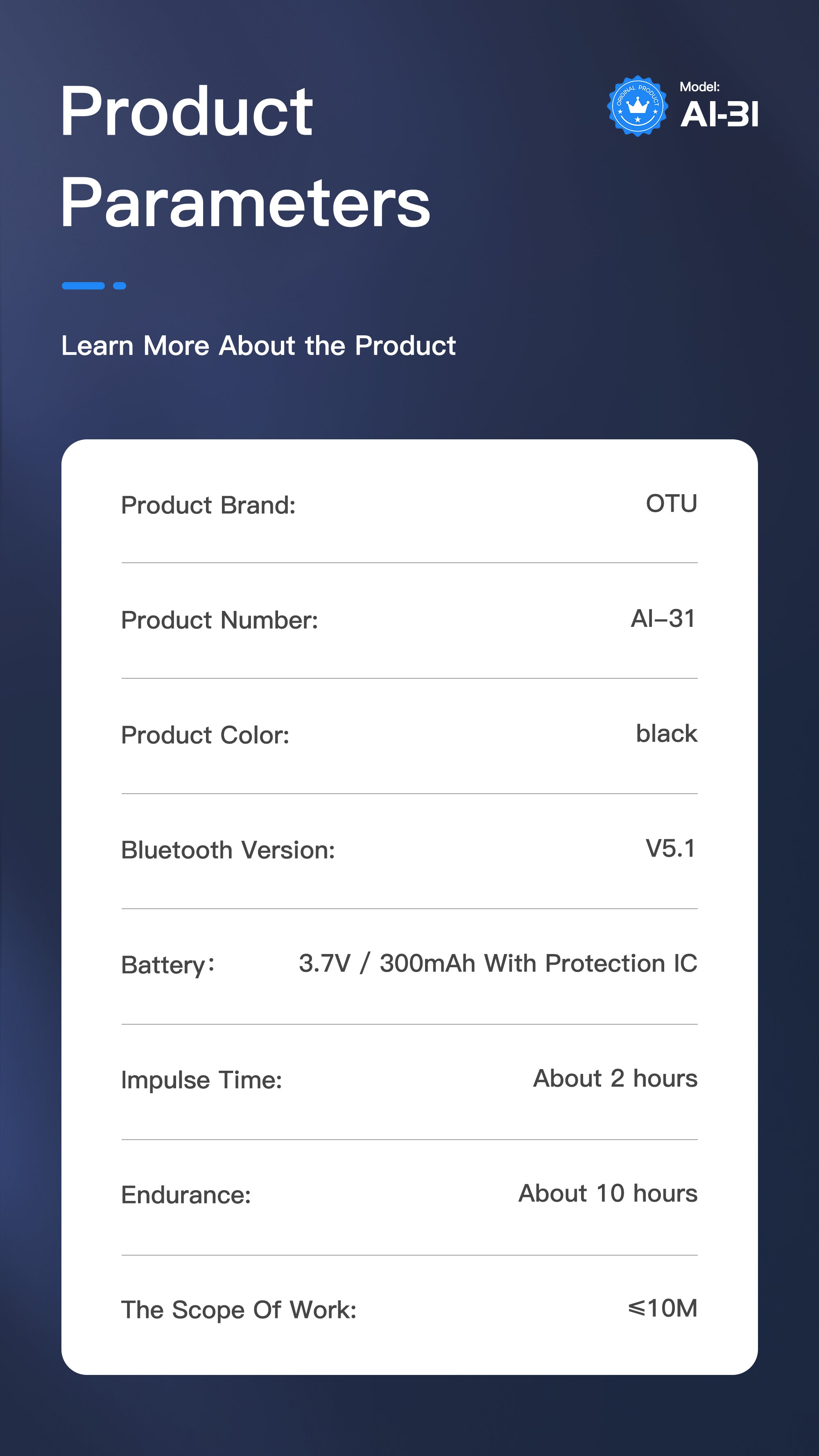OTU AI31 True Wireless Earbuds - 10H Playtime, Active Noise Cancelling, Hi-Fi Stereo Sound, Bluetooth 5.1, Comfort Fit