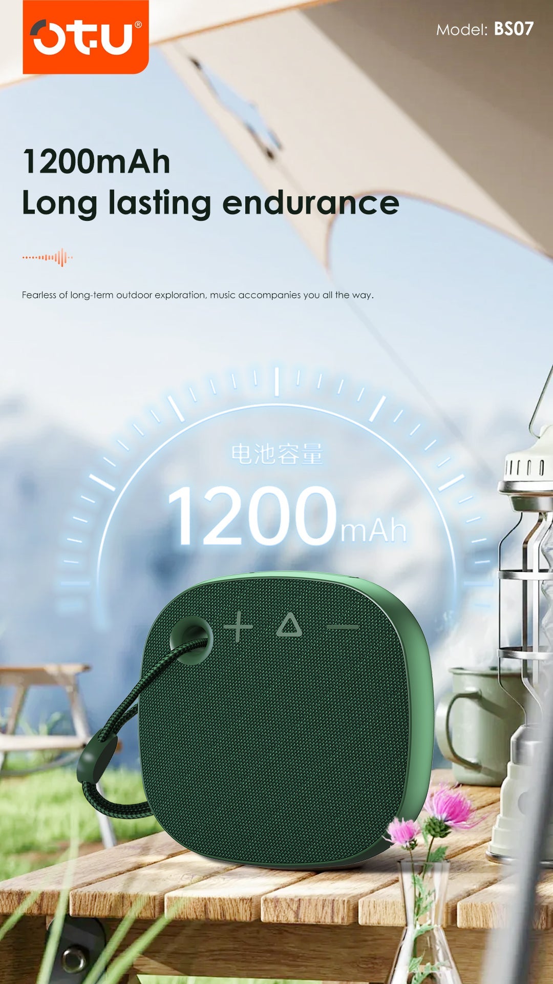 Otu BS07 Portable Bluetooth Speaker with Shocking Bass, Bluetooth 5.3, 1200mAh Battery for Outdoor Travel and Music