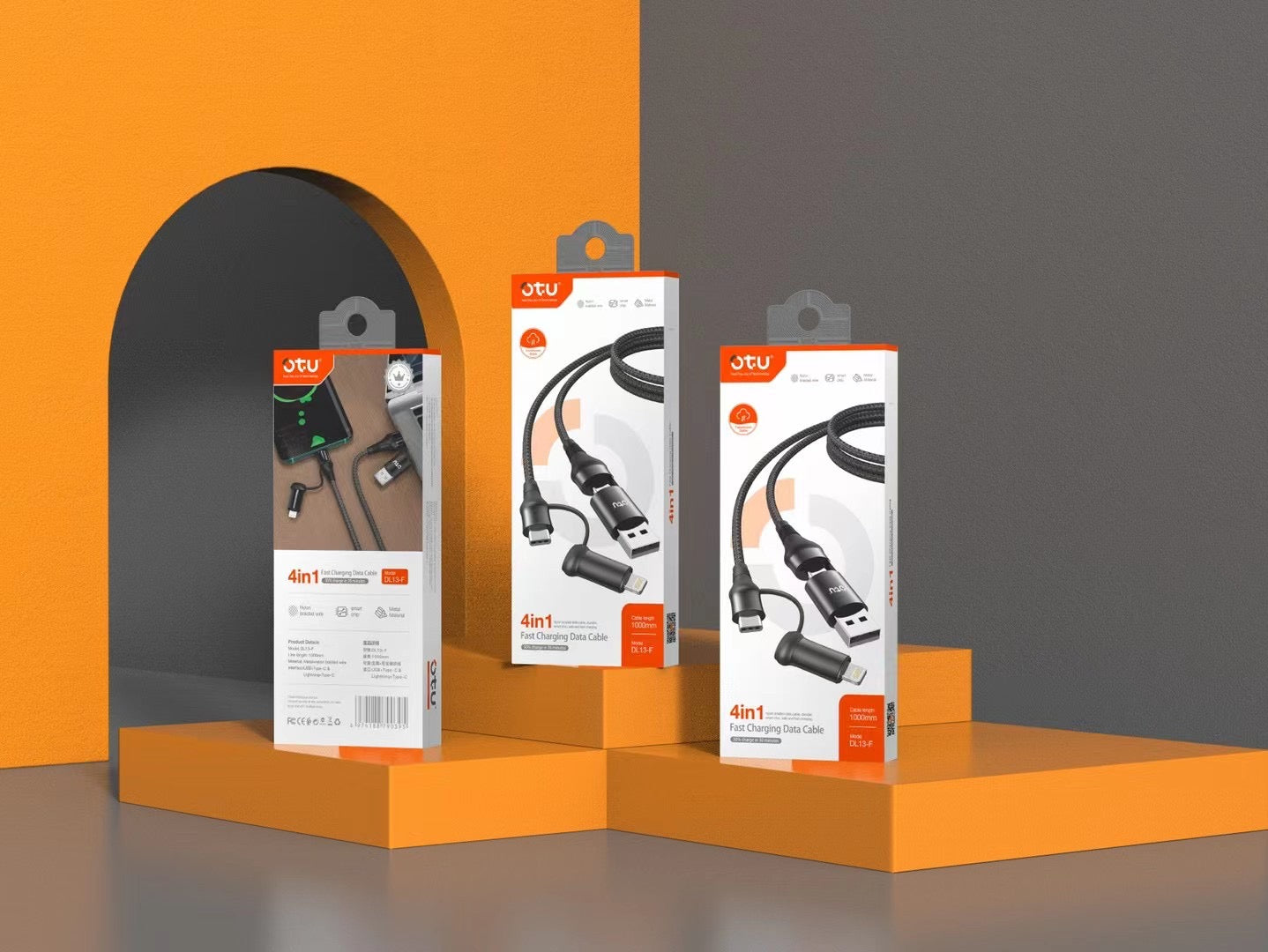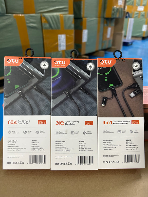 OTU DL13-F 4-in-1 Fast Charging Nylon Braided Cable | 50% in 30 Mins | USB-C & Lightning Compatible for All Devices | 1M