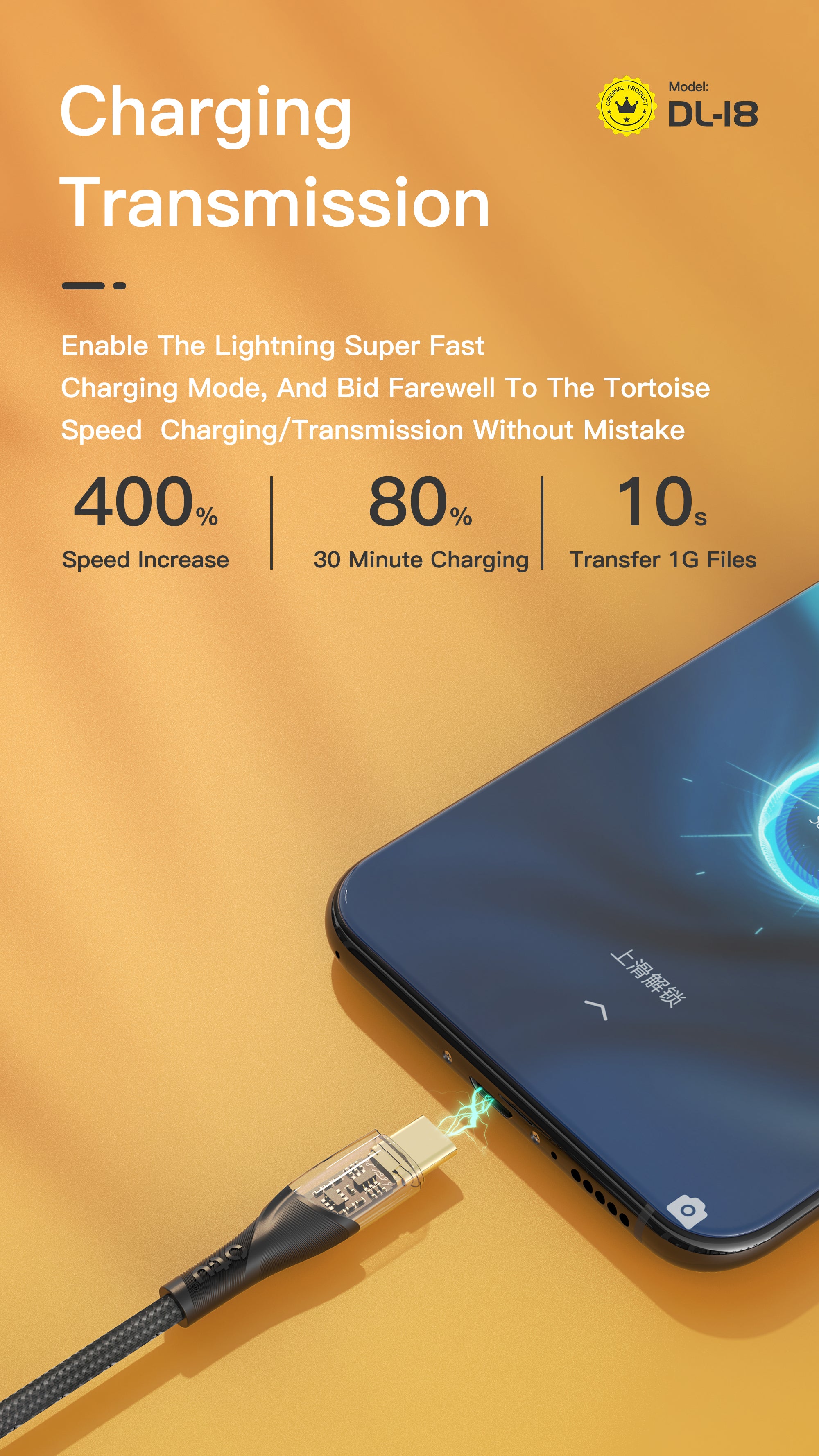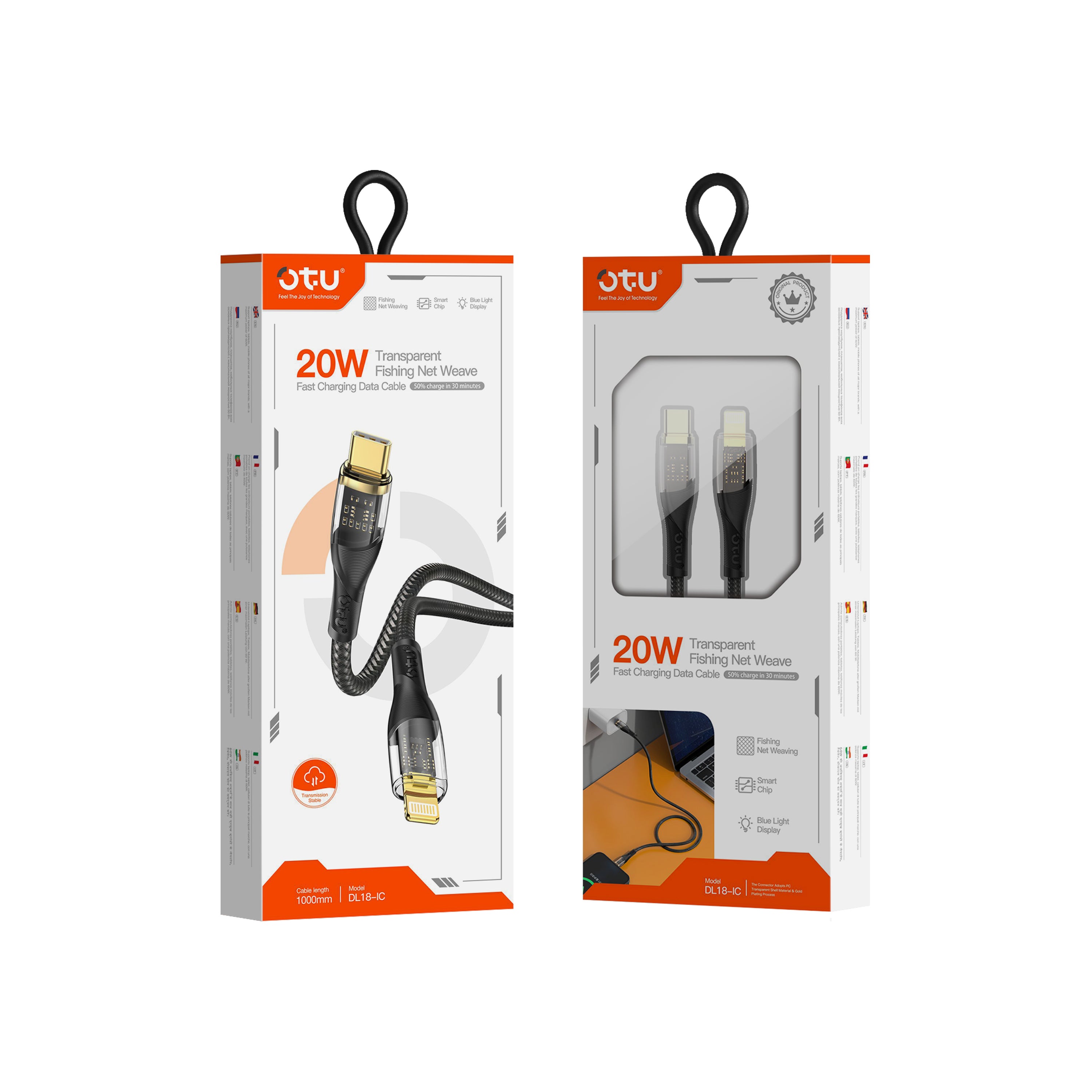 OTU DL18 CC and IC 100W Transparent Fast Charging Cable - Nylon Braided USB-C to Lightning & USB-C to USB-C Cable for High-Speed Data Transfer & Durability