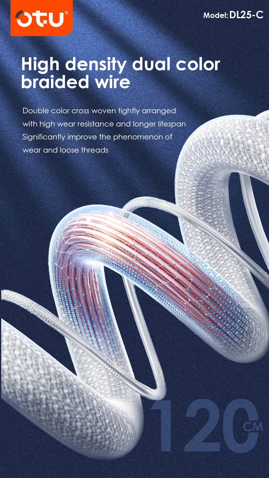 OTU DL25 60W USB-C to USB-C Fast Charging Cable PD Compatible with Apple 15 - Braided Durable & Data Sync