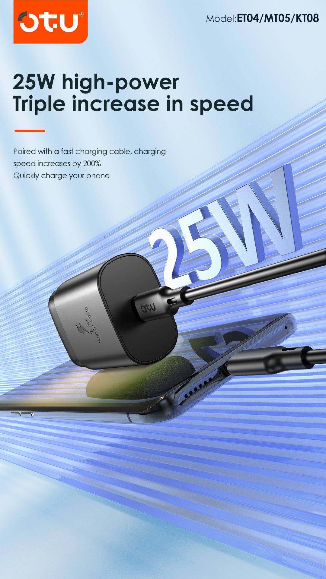 OTU MT05 25W GaN Fast Charger with PD & QC 4.0 – Ultra Compact Power Adapter for iPhone, Samsung, Huawei | 3X Faster Charging