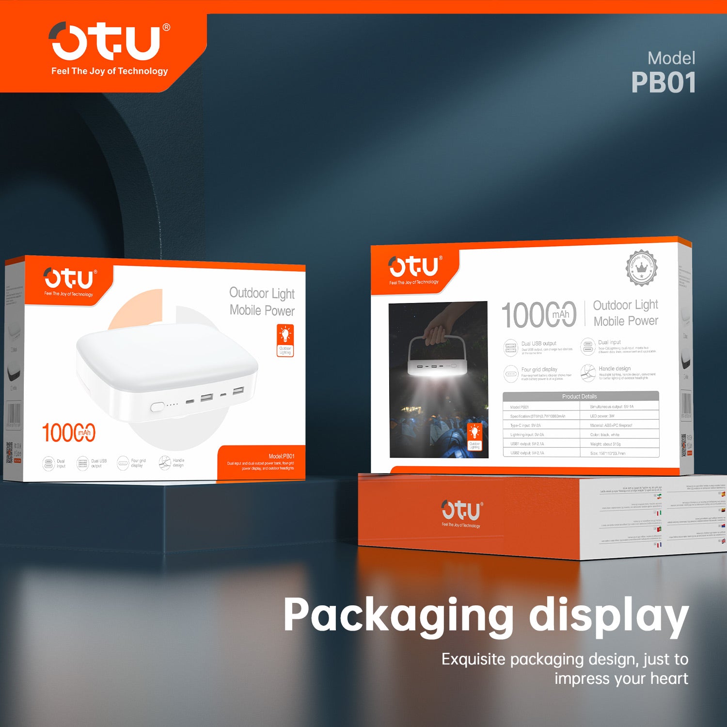 OTU PB01 Outdoor Portable Power Bank with 5W LED Light – Dual Input/Output, Large Capacity for Camping, Emergencies, and Outdoor Use